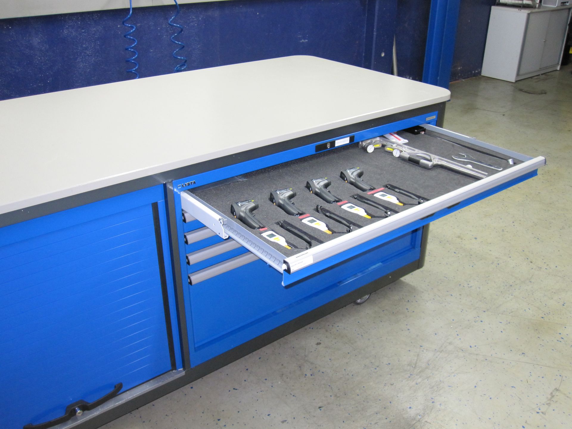 - Hilfsmittel wie Werkbänke, Montage- und Hebevorrichtungen,
